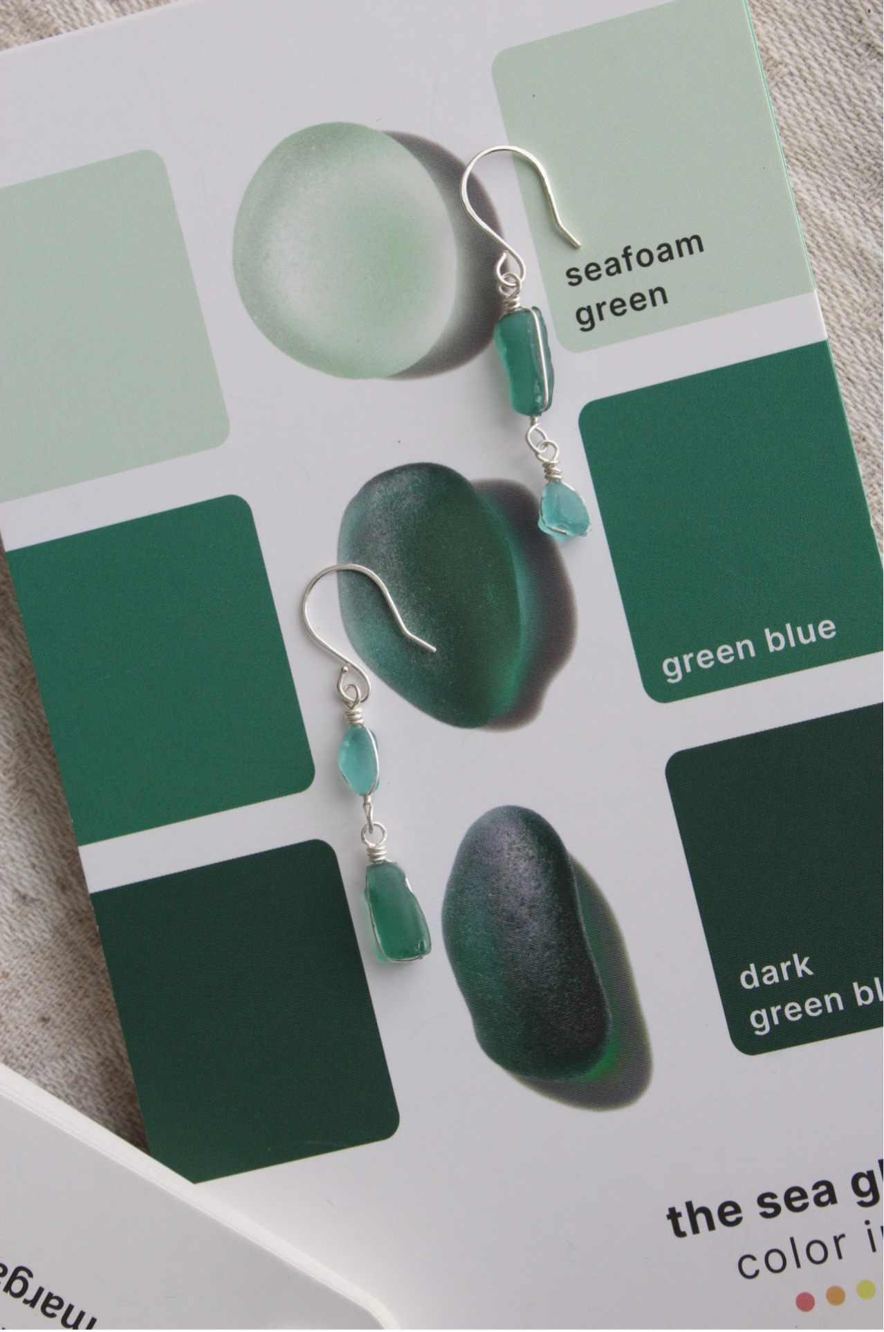 Earrings made with blue & teal blue glass shards collected in Lake Léman, Switzerland. Hand made with Sterling silver wire.